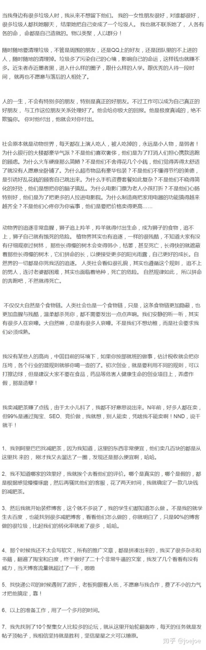 主要是找好代理的产品,不要找三无产品,切记存着害人之心去推销无良产品,切记囤太多货品,勤于活跃在各种网络平台上,对顾客真诚,多与人建立健康的关系网。暂时悟到的方法,欢迎探讨、补充。