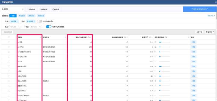 接着用百度推广的“关键词规划师”工具查看下相关关键词的搜索量,一个领域如果有相关关键词日搜索能破几十个就值得一做了,背后真实搜索量实际上可能是几百甚至上千的量级,因为用户很多奇奇怪怪的搜索请求你不可能统计完全。就项目落地意义来讲,这个工具的效用甩百度指数100条街,很多关键词没有百度指数,但是在关键词规划师里头几乎都会有日搜索量的展示,再说你看百度指数不就是为了估个搜索量吗?(天天拿百度指数说事的,可能连百度推广账户都没开过)