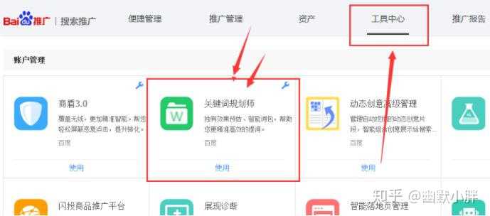 注册账号成功以后进入百度的后台,然后点击工具中心找到关键词规划师,这都是免费使用。进入关键词规划师以后会看到界面,左上角有一个放大镜也就是搜索的一个图标,想搜什么词就输入搜索词进行搜索。