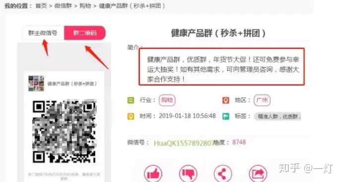 然后随便选择一个,比如第五个“健康产品群(秒杀+拼团)”,25 分钟前更新的,浏览了8748次的。