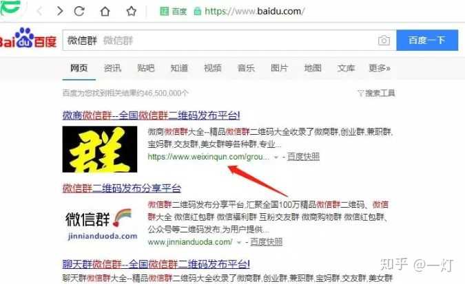打开百度,在搜索框内输入“微信群”,会出现很多网站。