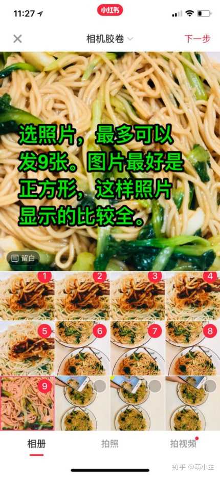第二步:插入图片,最多可以插入9张,建议图片最好是正方形,这样在小红书上显示的更完整,选好之后点击下一步。