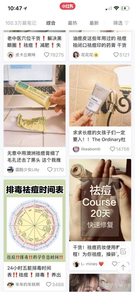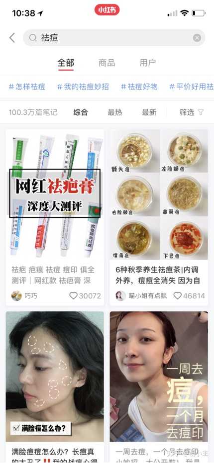 比如说我想要买一款面膜,但是我不知道那款面膜好,那么我就会去小红书上面去搜索:祛痘。