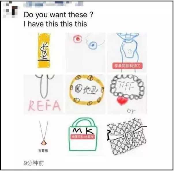 于是,“SD姐姐”继续在朋友圈发广告,但是在“风紧”的时候,也学部分同行的样子,有些广告文字改用了多年没用过的英文和最近才学到的日文,部分实体图片也变成了治愈风满满的手绘图。