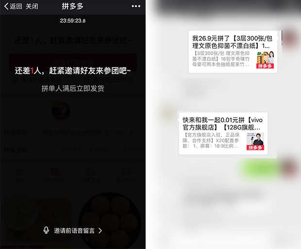 拼多多依靠和微信的合作,已经超强裂变模式的拼单功能,