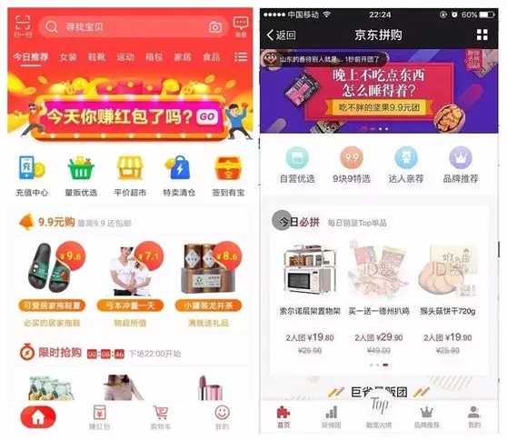 我们依次从首页推荐,分类页与商品详情页对拼多多与淘宝特价版之间的差别进行对比。