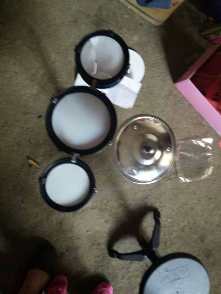 最后阿姨好不容易成功拍下架子鼓,过了大半个月才收到,阿姨拍照给我妈看,原谅老年人的渣照相技术——材料差是意料之中的事;鼓面破了可以赖快递太粗暴;但是说好的架子鼓呢,鼓呢!你倒是有个鼓样啊!就这堆塑料和破铁片,根本安装不起来“架子鼓”!