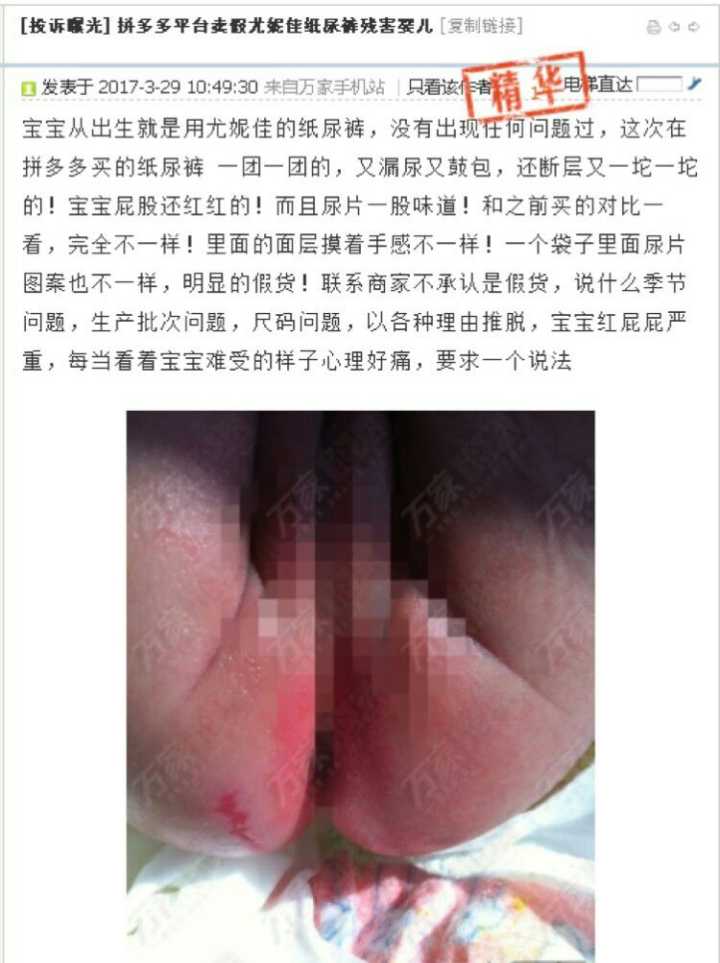 刷微博看到一条新闻,一位年轻的母亲给宝宝在拼多多上买尤妮佳纸尿裤,结果用了之后宝宝产生了很严重的红屁股: