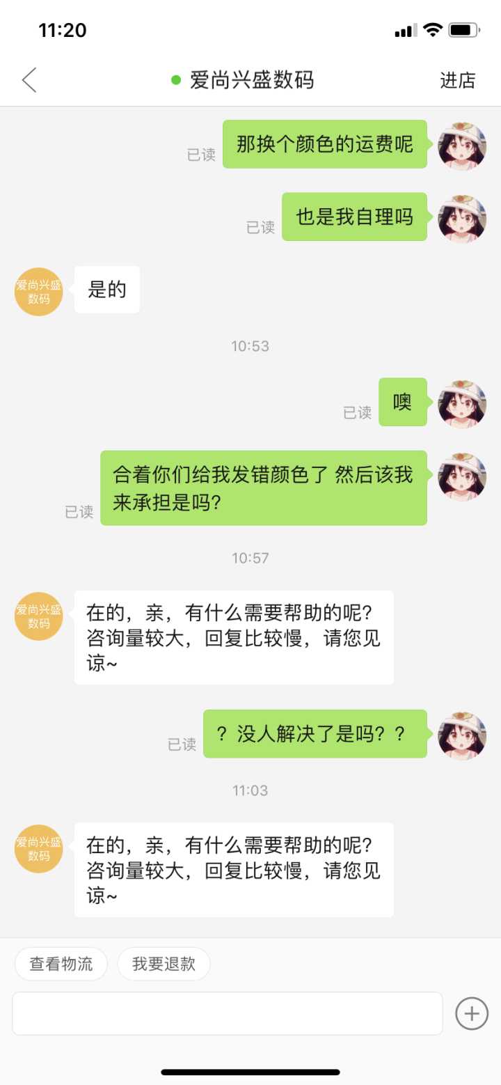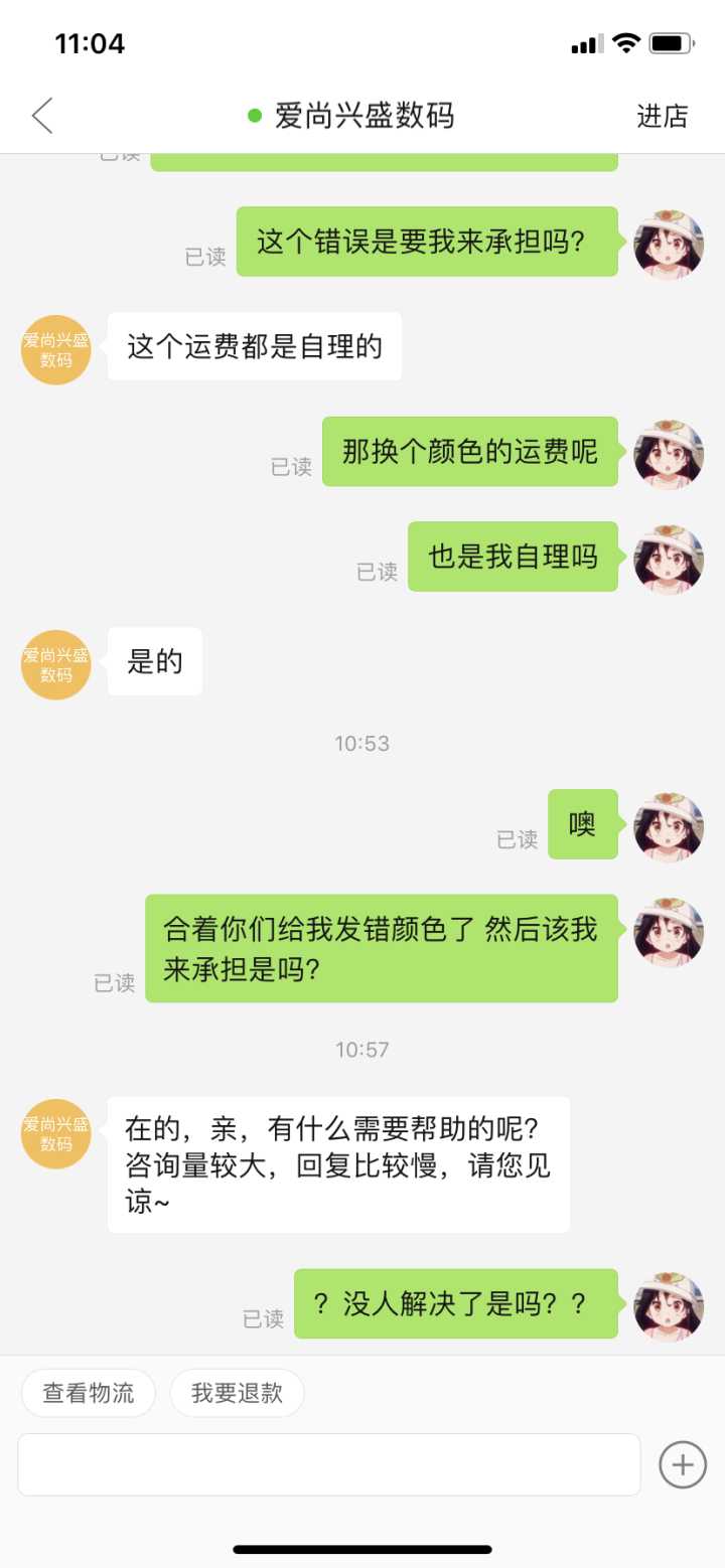 到这个时候我都还是觉得还ok啊 不就是发错颜色了吗 联系客服换一下就好啊 这有什么啊