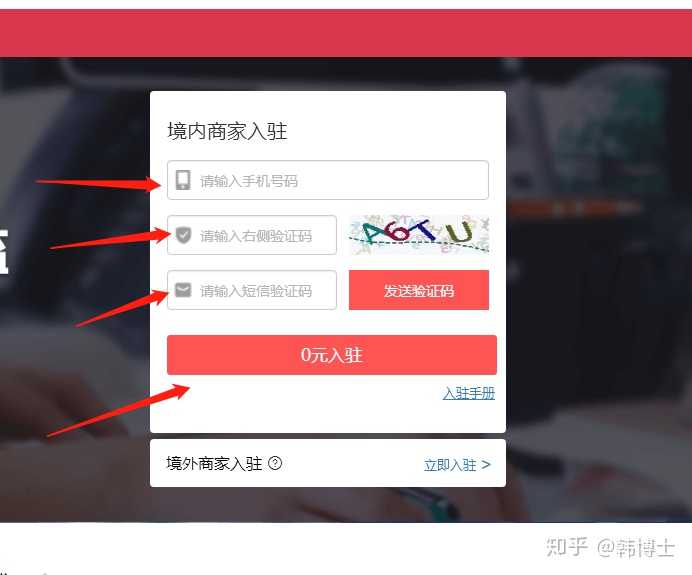 然后点击商家入驻页面;