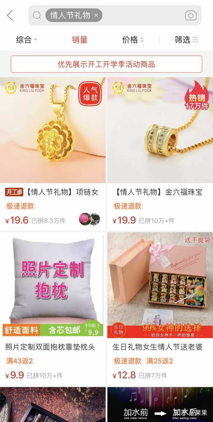 我在拼多多上搜了下情人节礼物关键词,你们知道销量最高的是什么吗?