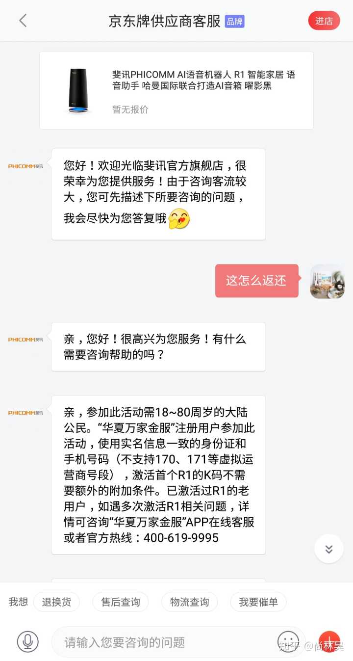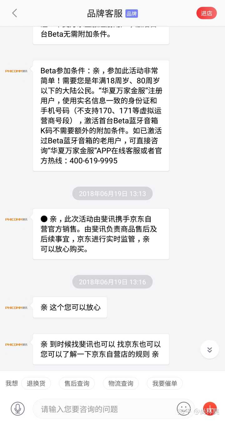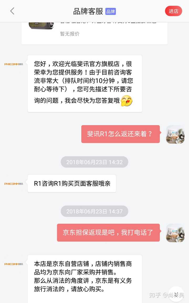 斐讯出了这么大的事情,我是不太了解斐讯的,但是一直在京东自营买电子产品,觉得京东的售后和服务都是蛮好的。后来6月23号咨询京东在线客服,详见图片: