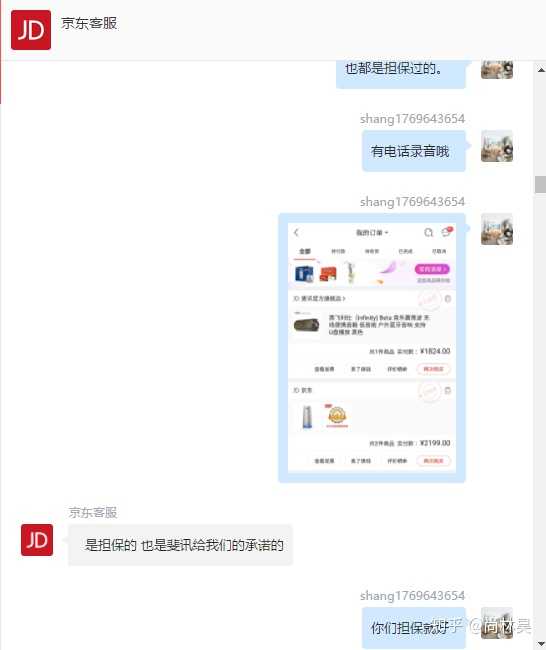 京东客服可能是心虚了,最后面又说了担保, 但我不放心,要求升级回电处理,后来我又打了好几次电话,最后7月8号给我来电说担保不了,详情可以看图片,也是通话内容翻译成的文本: