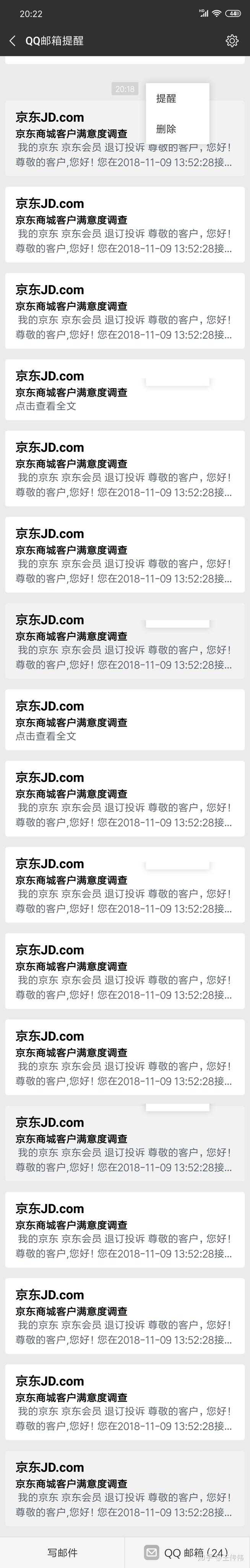 建议别投诉了,我就咨询了一下后台,给我发了这么多的邮件咨询满意度,我以为是我的手机中病毒了呢。
