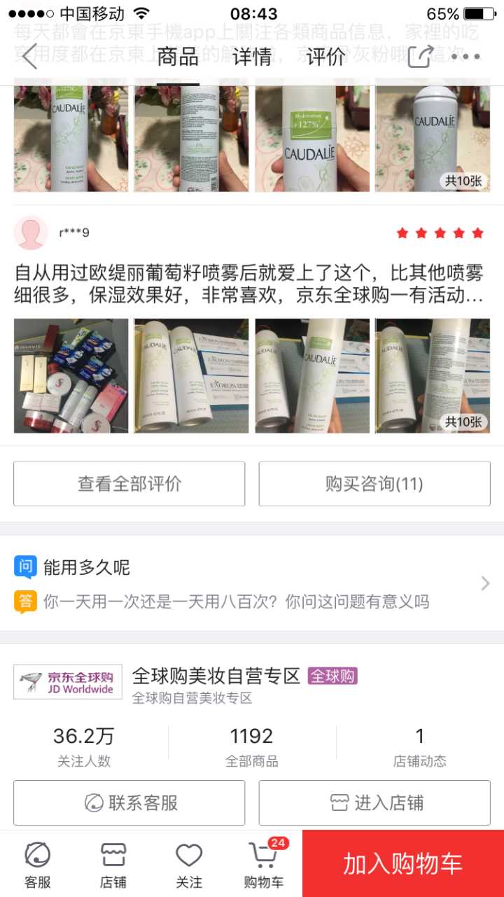 之前看过这个答案,然后将信将疑,因为一直在京东买东西(真正京东自营的巴黎欧莱雅官方旗舰店是可以买的,本人买过,当时也特意查了授权许可),所以本着信任的态度,在 全球购美妆自营专区 这家店买了两瓶欧莱雅……谁叫我贪便宜呢!!