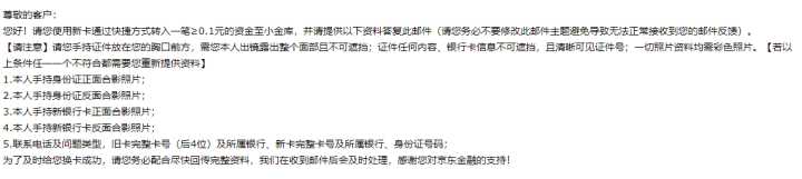 转钱进京东小金库的银行卡注销,需要把钱转出,打客服电话后,收到邮件,手续如下。