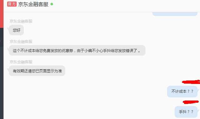 这优惠券是京东金融针对2016年双十一放出的优惠活动,事前肯定是有考量的,随随便便就能“手滑发错”,你想想这内部管理能有多乱?如果不是“手滑发错”,那就是京东金融出尔反尔,觉得给你优惠太多了,于是强行单方面私自篡改。那就更NB了!你想想,你在京东金融存了100万理财,正常情况下收益应该是10万+的话,京东金融一看,不行啊,给你赚得太多了,我给你该2万吧!