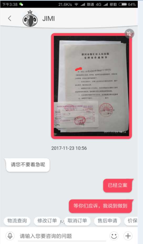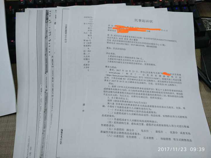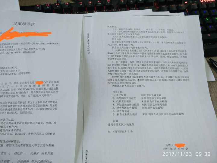 起诉的截图11月23号发给京东,现在还没与我沟通。
