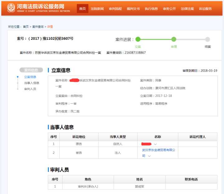 中间有一个小插曲,法官给我打电话说寄给京东法律文书被退回了,联系不上被告。让我去交公告费用。