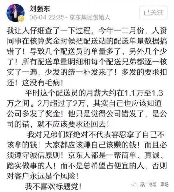 刘强东真心对快递小哥好,这件事就应该道歉吧????