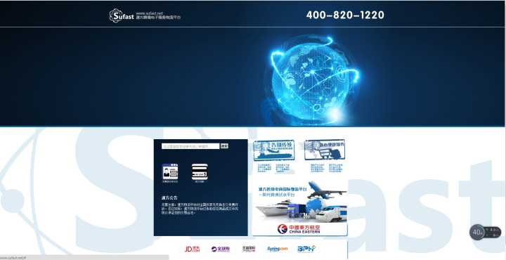 原来有两家速方,我最开始点击的是soonfun那家,他们家的客服说不是他们家的快递,我又瞅了好久才发现还有一家sufast,这个是他们官网界面