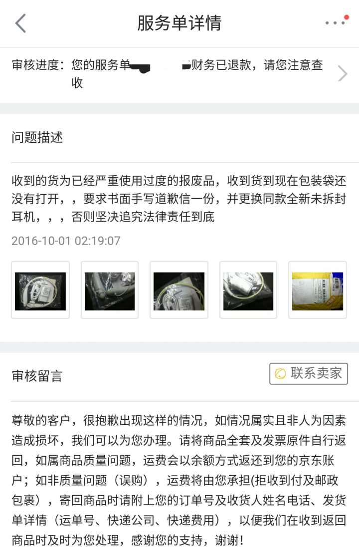 哈哈哈手机款京东已经退了 这个法子真是好用啊!早知道 早点儿投诉商家买的小米手机结果三天不到手机屏幕用不了了!首先我立马申请售后,然而他们售后是个trash,更本无法正常沟通,我就又申请了纠纷,这时我提供图片写好申请提交,耐心等待!期间我又给商家打电话开始了拉锯战啊!我就说明问题,开始那个男的还不错可能我也说的有道理吧自恋下(哈哈哈。。。。),然后他就说让我把手机寄过去,四天过后手机到了,商家竟然拒收了原因是手机有划痕,FUCK 不能忍受,我又开始和商家讲道理,当然啦态度强硬,但是不是骂她的那种,我看这个形式他们不想和我私下和解了,于是我就生情京东专员介入!然后京东催促他们解决。结果他又同意了让我们第二次派送,然后我又打电话让快递派送,这次问题来了!套路我,换了个女的那家伙北京方言,拽的更二五八万似的!说因为你的手机有划痕所以不给退款,只能维修他们出示检测报告!然后我那家伙一听脾气上来了!怎么可能,质量问题是铁证,你单方面说手机有划痕我就信,然后我就吵起来了!这个女的买办法死犟的说我手机有划痕,他甚至又威胁我说拒收,还说快递就在他旁边,要么同意维修,要么他就拒收,我那个气啊!好女不吃眼前亏,尽量把损失降低到最小,无奈最后我暂时同意维修! 先让他把我的快递收了!哼你以为我会罢休,对商家我实在是失望至极,既然商家收了手机,我的目的已经达到了,OK,我又收到一个电话京东的,他说商家和我达成协议我同意维修换货,MMP,我一听啦,就说:”商家是给我打电话了但是我没有同意啊”, 小样er你对我不仁那我就对你不义啊,哈哈哈。。。。然后京东专员在后台给出:解决方案是出示手机维修检测报告给我, 结果商家P都没放!就这样我被晾了一周,。然后我继续后台催促京东给出明确回复。没动静。哎果然啦靠不住京东,我就只有拿出我的杀手锏啦: 申请北京工商局介入啊!立马提交了投诉申请!第二京东立马说,检测报告出来了,是手机质量问题,他们先给我退款,扣商家保证金,我那个开心的啊,好好的和解你们不干,哎何必呢!内心大笑(哈哈哈········)退款特别迅速。不过你也要催一下,后台提醒一下就好了!很感谢楼主分享的东西!虽然说有时候有些部门确实是不负责,官官相护那种!他怎么处理是他们的事儿,我们老百姓怎么做是我们自己的事儿!有些路还是要试试的,不小心成功了呢。你做了有不会有什么损失,大不了就是没人处理而已!还有就是这天路被堵住还是会有下条路的!所以说大家维权意识还是要有的,不能因为自己觉得,认为这个事儿的结果可能会怎样就不去做点儿什么。这样才是真正的傻!好啦···此言论仅代表个人想法。不喜勿喷罗。哇卡卡卡卡卡