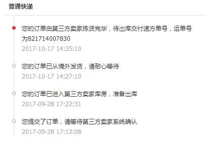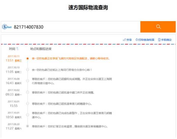 我第一反应当然是欣喜啦,因为居然早就发货了,而且10.11就到了国内,但是由于我填写的收货地址是我国庆回家的老家地址,我就想联系一下快递方问下可不可以改寄到上海来,然后百度辛辛苦苦找了半年