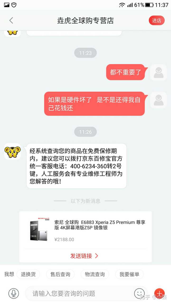 之前买手机被京东坑过,被客服磨得没脾气了,客服也被我磨得没脾气了(结果后来客服MM给了我她的电话,下班后她也吐槽京东,比我吐槽得还厉害( ⊙ o ⊙ )啊!)。但是问题依然得不到解决,估计京东觉得自己是大公司,可以上天吧。