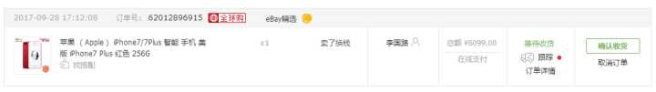 于2017.9.28在京东全球购第三方卖家 “eBay精选” 店里购买了一部美版ipone7 plus 红色256G
