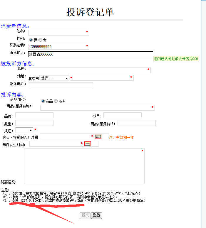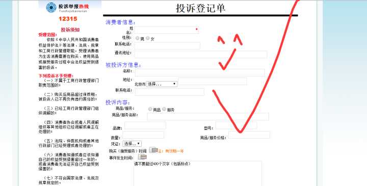 有部分朋友说打开投诉网页后没办法输入手机号码
