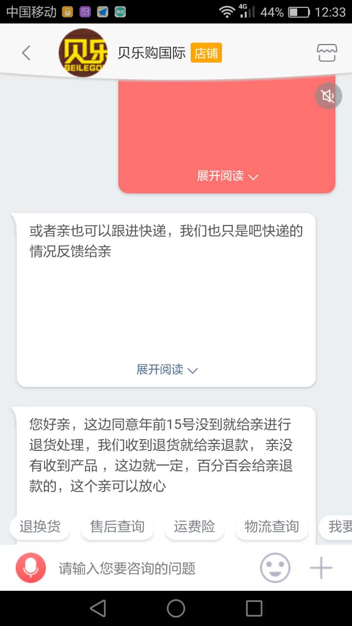 结果8天后客服才告诉我没货,劝我取消订单然后给我退款,我气不过就是不退,她说尽量联系采购去国外买。。。我想知道既然没货为什么B2C首页上要有呢,这不是欺骗顾客吗?不是保税仓发货就算了,你告诉我是海外直购也行啊,这干脆就是卖的概念啊啊啊
