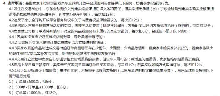 我不知道卖家究竟要扣多少分,但是京东就是包庇他们,每隔两三天给我打个电话,说赔我五十元京券,答应就退款,不答应就算,反正你不能怎么他们,现在已经一个多月了,我的手机还是不知道在哪,最后卖家又跟我说报关这个东西,海关查到你了才有记录,没查到就没记录,我也向海关了解了,他们说都有记录的,走的电商渠道的话只要有报备就有记录的(这个我不是很了解,但我想京东肯定有报备吧,即使没有报备你国内配送一个月是要送到NMB里?老子会信你真的发货了?)