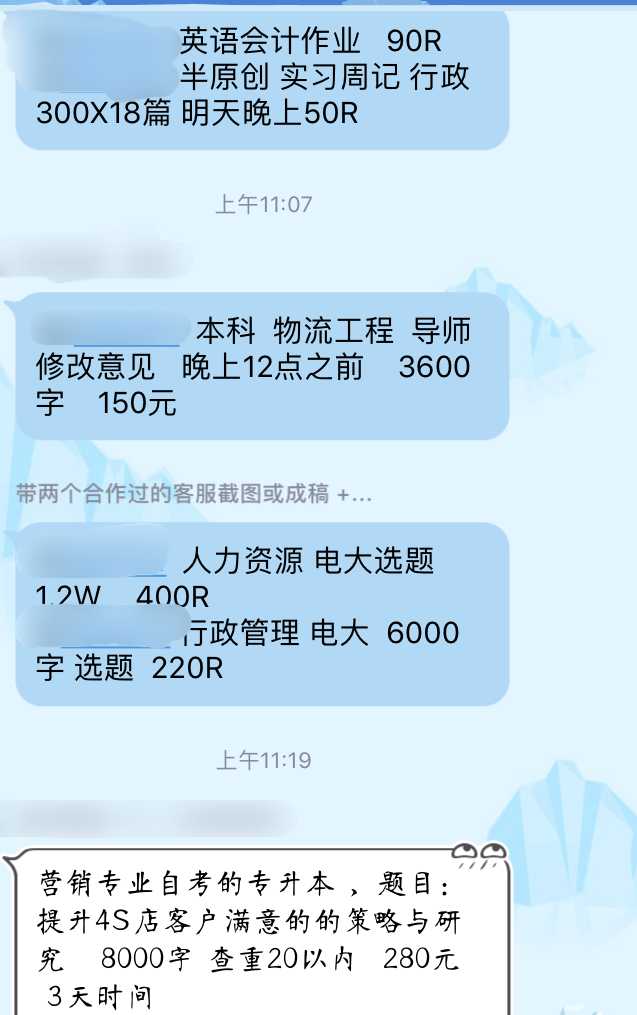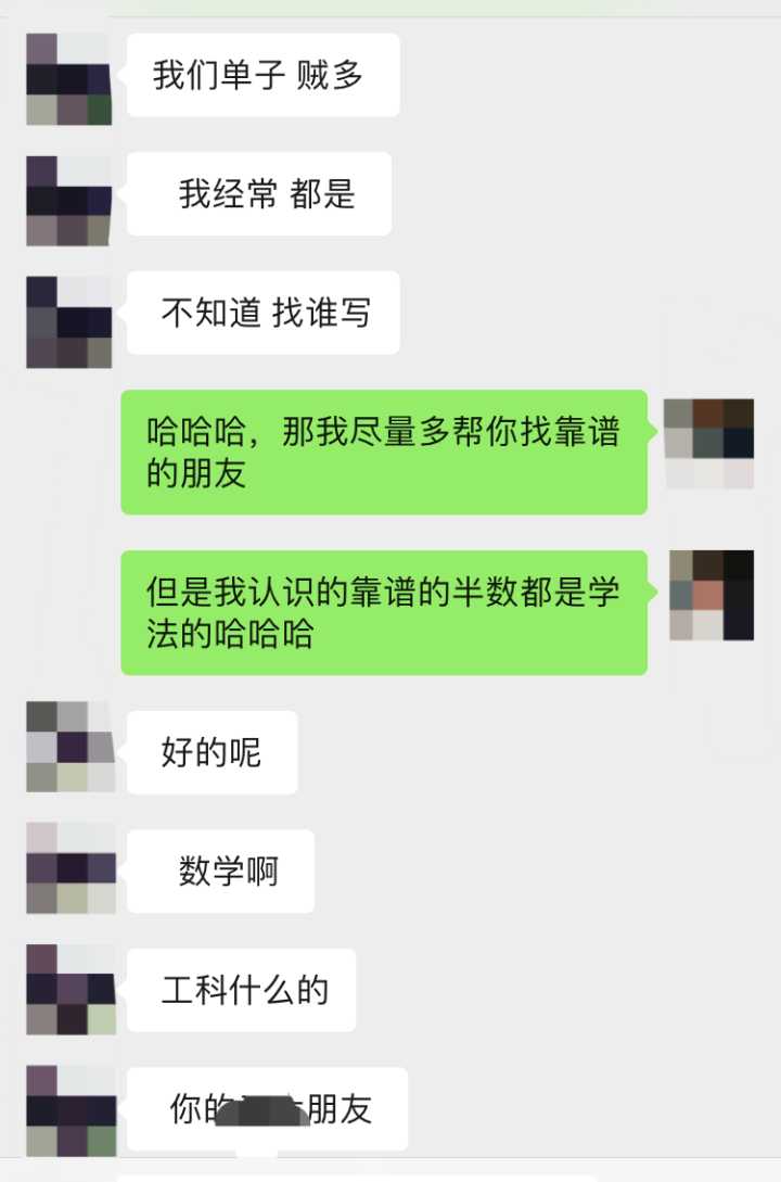 另外,由于某一天小哥哥告诉我他们很多单发不出去想找熟人,但是我呢,又实在拉不下脸去学校的群里发广告,也不敢告诉身边的朋友我在帮人代写lun 文啥的,但是又实在不想放过这个赚钱的好机会。哈哈哈哈哈哈如果有知乎的朋友感兴趣,而且感兴趣的人多的话,我就拉一个群,把大佬给我的单或者我在群里看见的发进来,每一单我赚5块钱,每天有十个人接单我就能赚50块哎哈哈哈哈哈哈哈