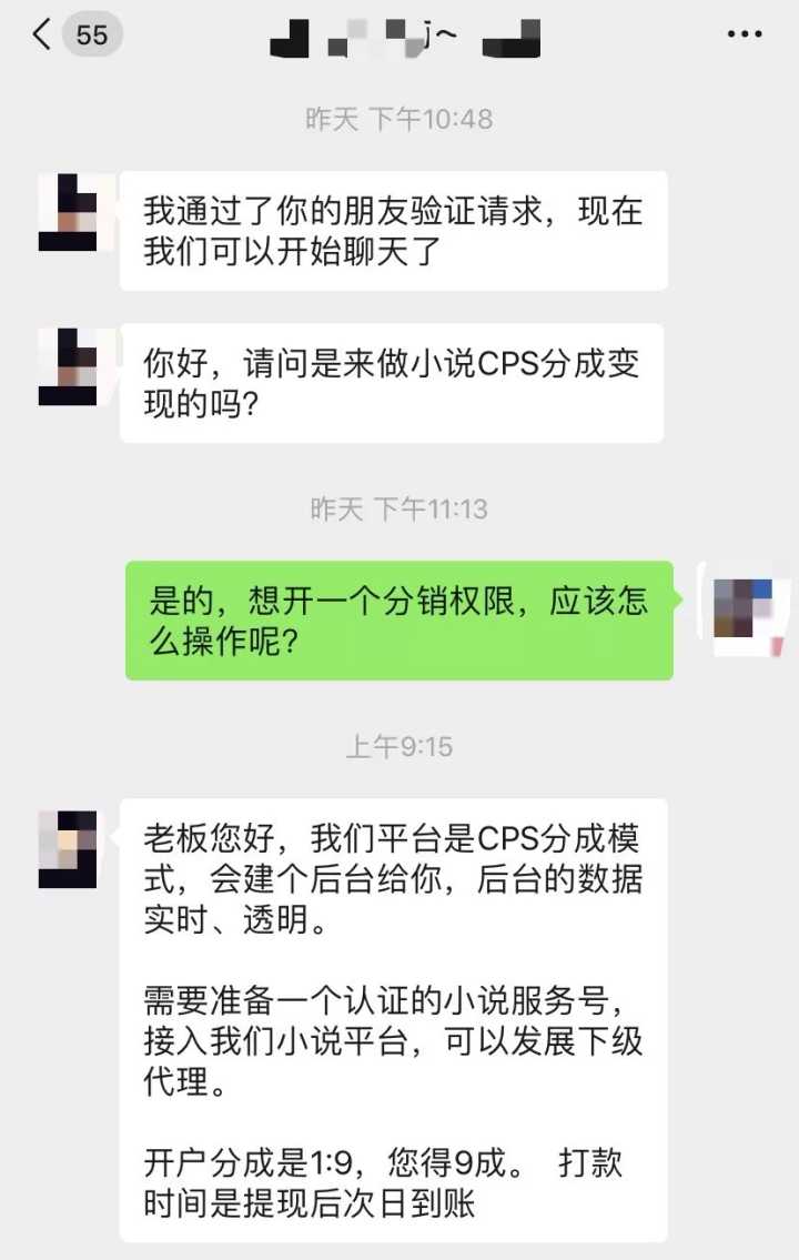 这个项目头很铁,就是通过小说平台开通分销权限,然后生成小说链接推广到微信群, 当有客户充值后,我们就有收益。