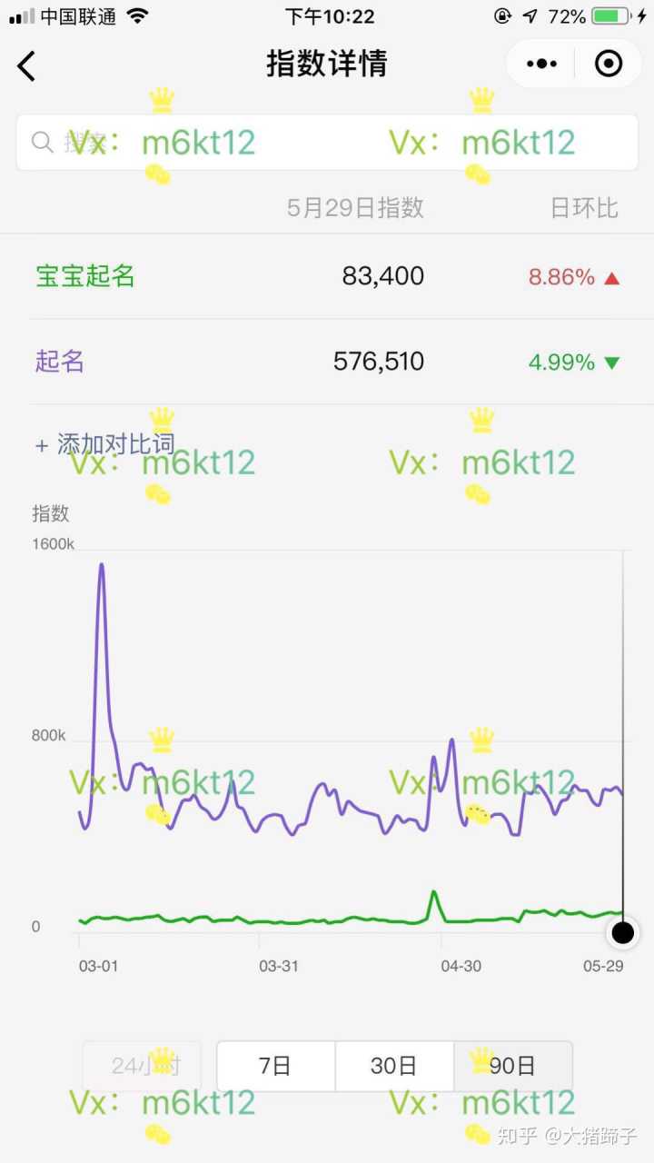 做这个项目前,我们先查一下到底是不是热词,可以看到每天搜索宝宝起名的有8.3万人,搜索起名的有57万人,而且这个指数还在上涨。