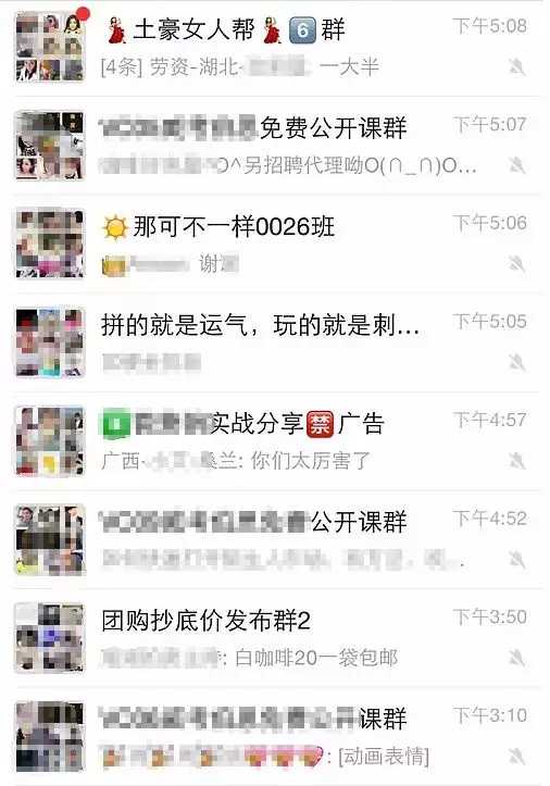 关于微信群的质量主要讲一下行业群,很多人加的群都是优惠券群、电影群、美食群这一类的,虽然数量庞大,转化率却低的可怜。说到这里,那些很容易进入的微信群我就不再阐述。