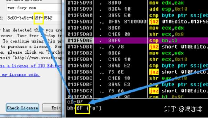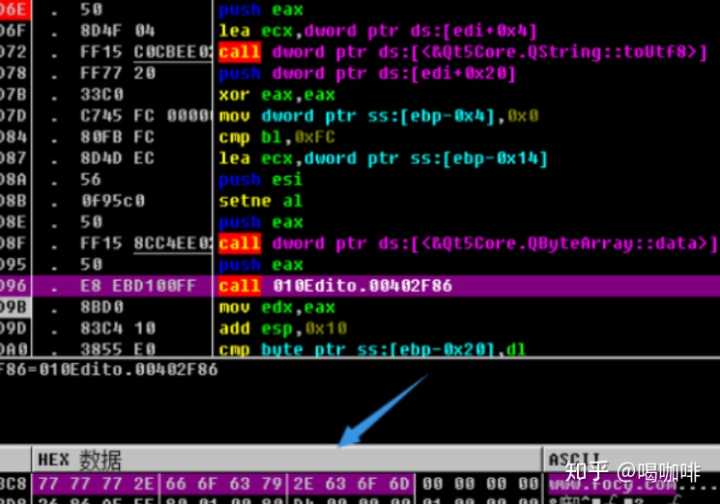 我们通过加密函数402f86,传入ascii版的用户名字符串,经过运算,得到类似加密后的返回值。