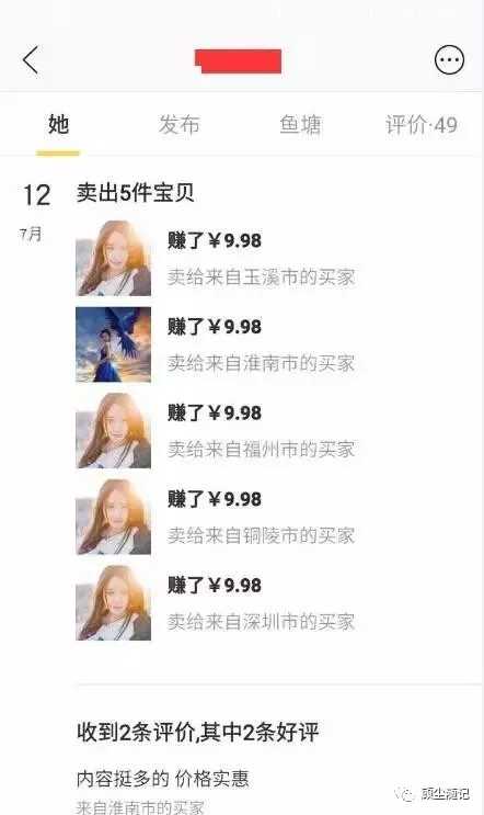 闲鱼这个平台里的东西,随便找的一个图,这个人一天卖出去五份也就有了50的收入
