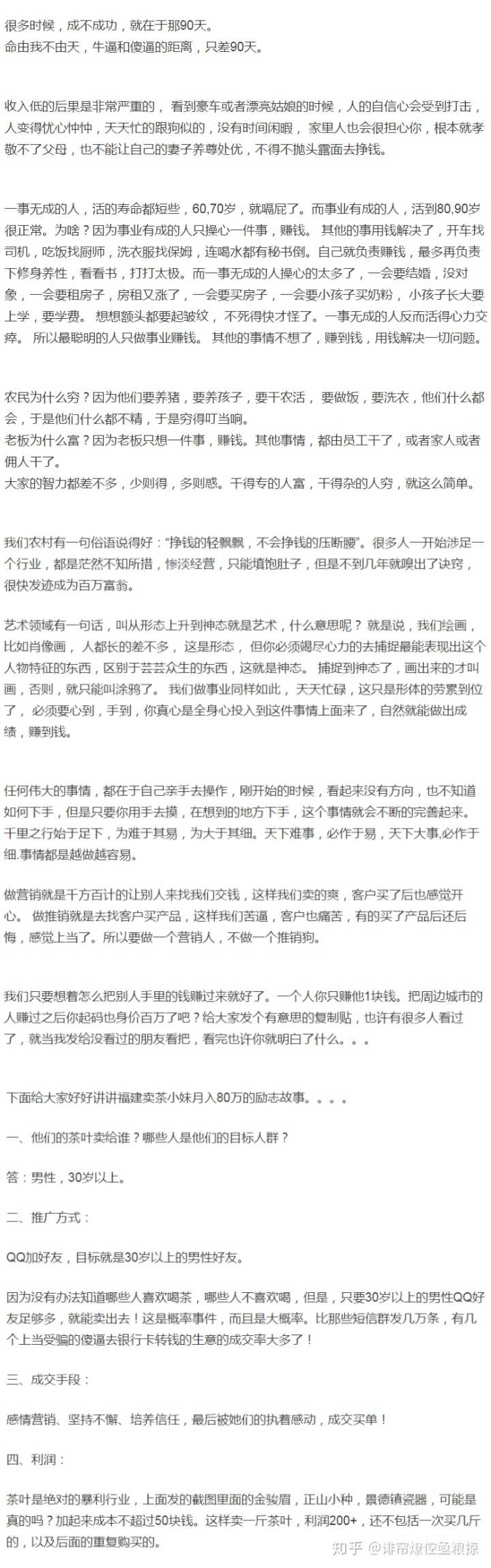 19. 做营销达到了一定境界后,一般掌握四种元素。1,思维;2,流量,3,数据库;4,自动赚钱机器(文化、制度,系统,渠道)。这四种元素,我成为为四象,若大家能熟练掌握一象,解决衣食住行问题,自然不在话下,若四象都能掌握,便是神一样的人物!!
