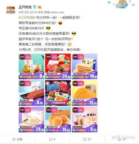 分析互联网传播主体,针对学生和年轻白领群体愿意为买到便宜又好吃的坚果,发微博来助其宣传,进行有效的开发和利用。这样的转发是惊人的,很快,三只松鼠在网上就快速传开了。