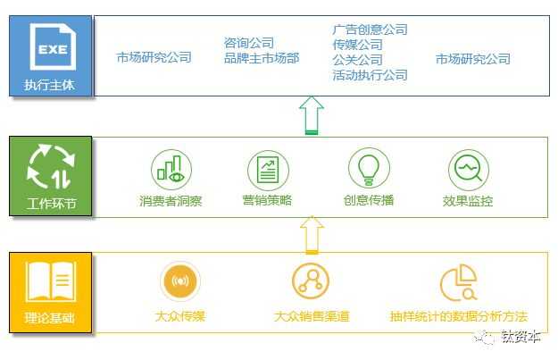 传统营销建立在营销管理理论体系以及营销服务集团的基础上。营销工作围绕着消费者,大概可以分为消费者洞察、营销策略、创意传播、效果监测四个环节,这四个环节分别是由市场研究公司、咨询公司或者品牌主的市场部、广告创意、传媒、公关公司、活动执行公司,以及市场研究公司分别完成。后来随着卖场和超市等零售渠道的崛起,围绕着消费者又产生了shopper marketing这个环节,就是针对消费者在超市卖场等购物渠道的行为和态度,针对性通过零售现场的营销工作,促进消费者的转化和品牌工作。