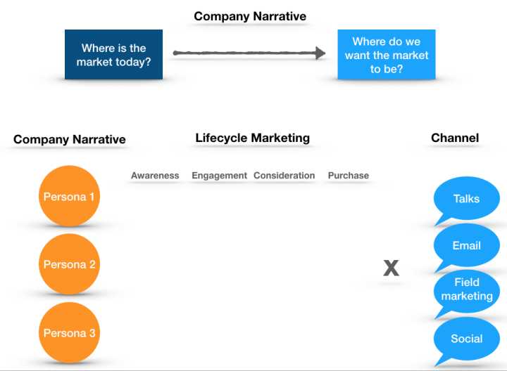 接下来“叙述”应该被映射到人物角色,并确定影响每个角色与现状相关的痛点。然后,通过客户旅程的关键部分创建营销内容,以说服每个人物角色,让他们了解这个未来愿景的好处。当然,这些取决于每个创业公司的买家。