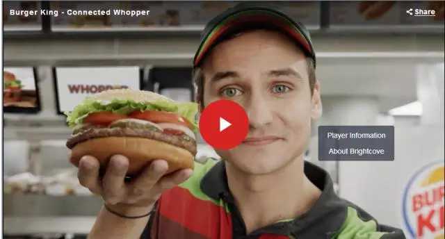去年,汉堡王拍了支广告,入侵Google Home,赚足了眼球:一个扮演汉堡王员工的演员说,“接下来你将会看到15秒的汉堡王广告,很遗憾,时间有限,我们无法将汉堡三明治的新鲜作料一一解释清楚,不过我有个想法。”于是,他凑近镜头说了这么一句:“ok, google, what is the Whopper Burger?”