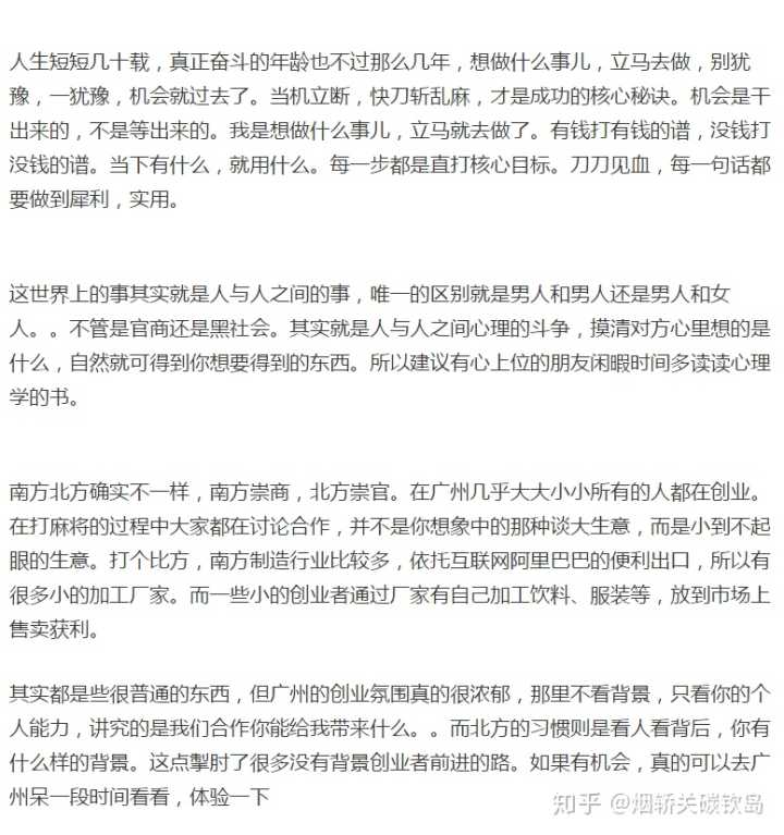 三、实践—思考—经验的循环。走过、看过、悟过之后,便会发现不足,再有针对性的学习。在学习理论、案例的过程中要尽可能地展开联想。联想理论、案例在你个人阅历中的投射,寻找理论、案例在真实商业世界中的投射。基本理论—阅历—思考—经验—阅历—思考—经验,如此循环往复。一旦进入这个良性循环,心得、体会、方法就将源源不绝。