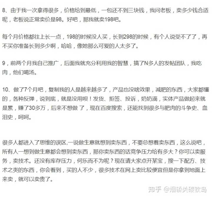 4、失败的案例远比成功的案例有价值,多分析失败原因,忌照搬成功的经验。最重要的是掌握规律。大学有一门课叫营销模拟,是让学生在一款模拟软件中建立自己的公司,以利润和市场份额为指标,设定产品、产量、价格、广告投入等来与其他公司竞争。在这个简化的市场中,规律是很好找的,价格高,需求少,价格低,需求多;广告投入多,卖的多,投入少,卖的少。现实的商业虽然复杂得多,但道理是一样的,看成功或失败的案例,最重要的是寻找规律。然而什么是规律呢?“渠道为王”不是规律,符合自身企业定位的营销方案才是。————段马乐咨询·Veale