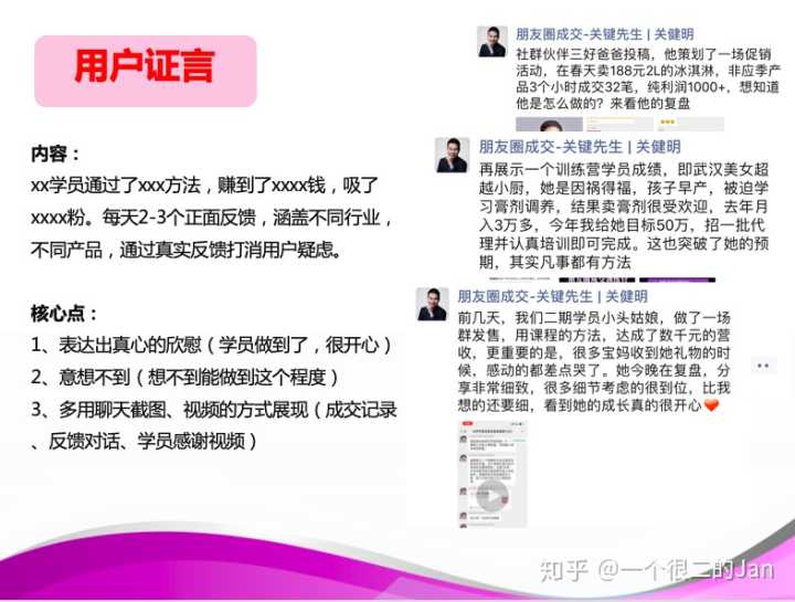 3、多用聊天截图、视频的方式展现(成交记录、反馈对话、学员感谢视频)