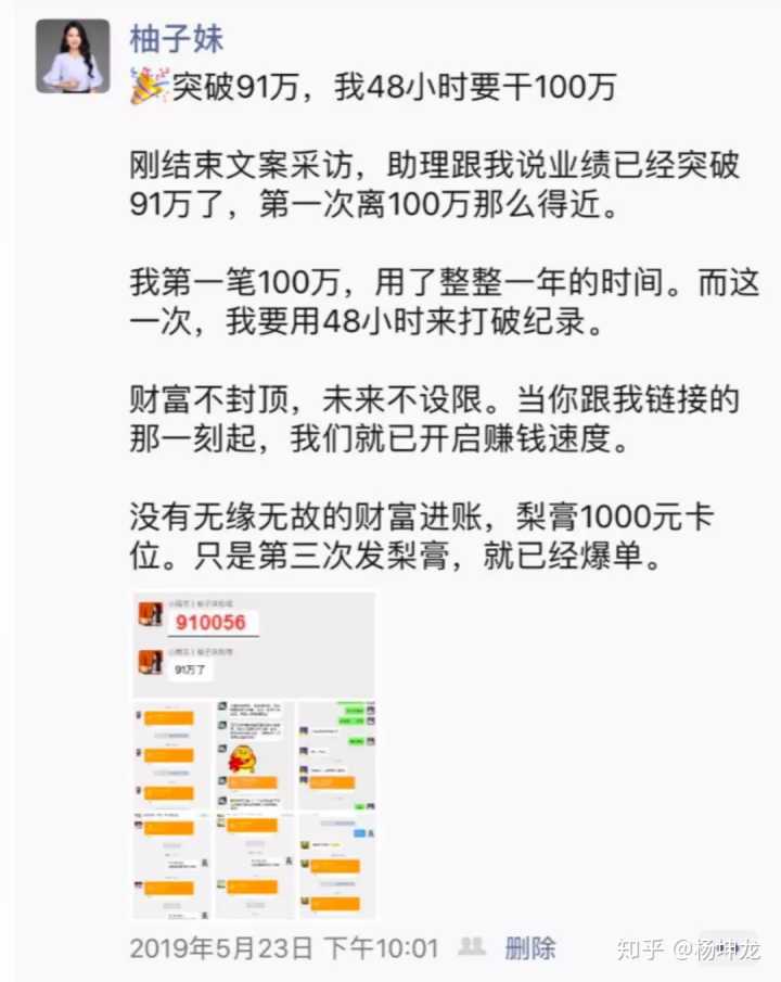 比如上面我这个晒单,是要告诉大家,我成交了 91 万,但是很多人肯定会质疑是假的。因为他们没有看到过业绩做的不错的人,所以,我们要原谅他们,也要给他们质疑我们的机会。