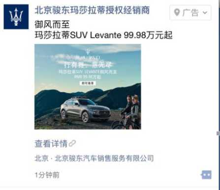 又比如欧克博讯做的玛莎拉蒂朋友圈广告。