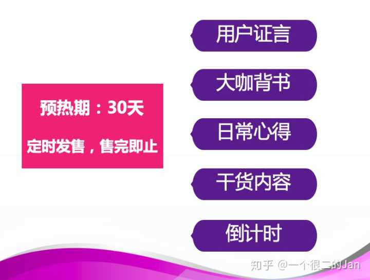 预热器营销方式:用户证言 + 大咖背书 + 日常心得 + 干货长文 + 倒计时
