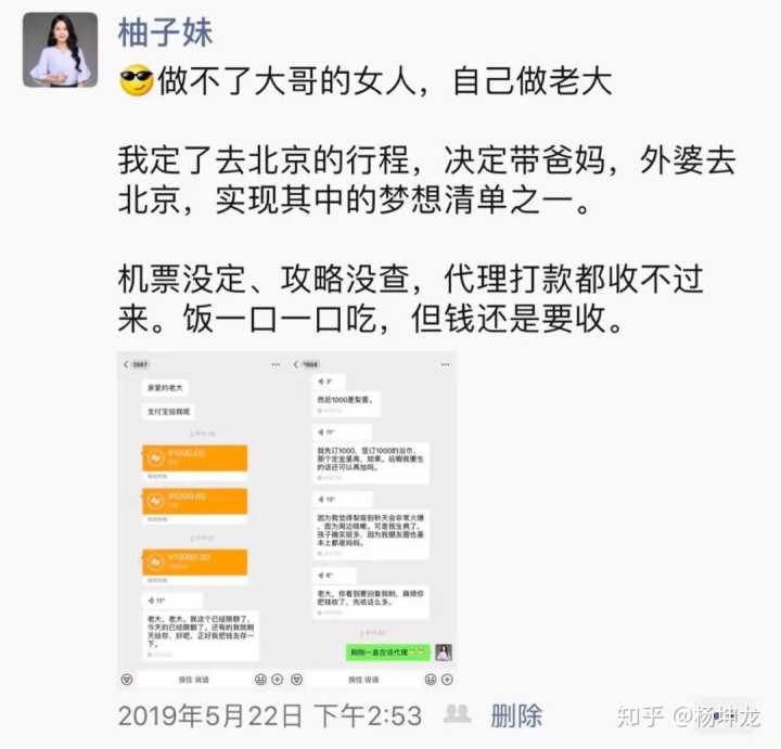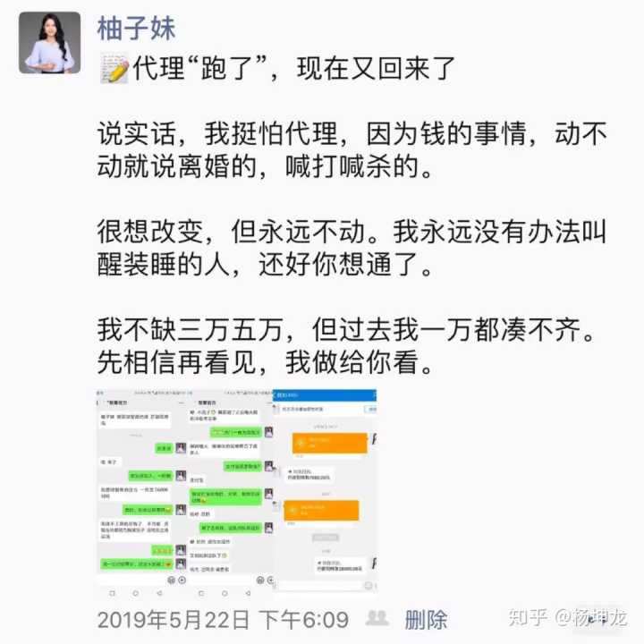 下面来看,第二个晒单。我是写了跟代理的小故事,其实最重要的就是标题那几个字。“做不了大哥的女人,自己做老大”。尤其是你带团队的,你要给人信心,她们才愿意跟你。要是你自己都胆怯,别人怎么会跟你上来呢?所以如果你招不到人,大家先反思一下自己的能量。